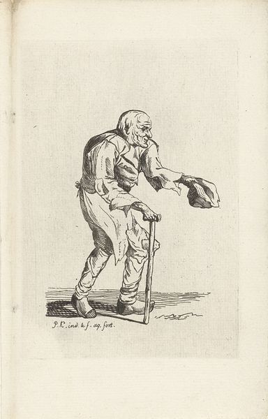 Editor: We're looking at Nicolai Abildgaard's "En siddende sammenbøjet nøgen mand i profil til venstre," which roughly translates to "A Seated, Hunched, Naked Man in Profile to the Left." It’s a pen sketch done sometime between 1743 and 1809. There's something immediately vulnerable and contemplative about it... almost melancholy. What catches your eye, what feelings does it evoke for you? Curator: Oh, absolutely. There’s a beautiful fragility there, isn’t there? A raw, exposed humanity that speaks volumes. For me, it's the curl of the spine, that intense inward focus – he’s like a question mark etched in ink. It whispers of internal battles, the weight of thought. I find myself wondering what occupies his mind. A great Romantic image of introspection and self-regard! What about you? Do you think there’s a specific narrative at play? Editor: That's interesting! I hadn't considered a specific story, more a universal feeling of…burden, maybe? The hunched posture definitely emphasizes that. Perhaps it could even relate to Abildgaard's personal life in some way, some emotional difficulty he was going through. Curator: It’s tempting to draw direct biographical parallels, isn't it? While it’s almost impossible to truly know, viewing the image through the lens of Abildgaard’s Romanticism--his championing of feeling and individual subjectivity-- might bring a new layer of richness to how you relate to it. This man could just be lost in thought as you are lost in looking. Editor: That makes sense! It gives it a timeless quality, doesn't it? Focusing on the emotions instead of searching for a specific narrative. Curator: Exactly. And perhaps that's the genius of Abildgaard's work. Its profound ambiguity leaves you space to fill the frame with your own questions and feelings. Editor: I will now definitely regard Abildgaard's image in a more enlightened state of awareness, feeling invited to share and connect in my silent contemplation!