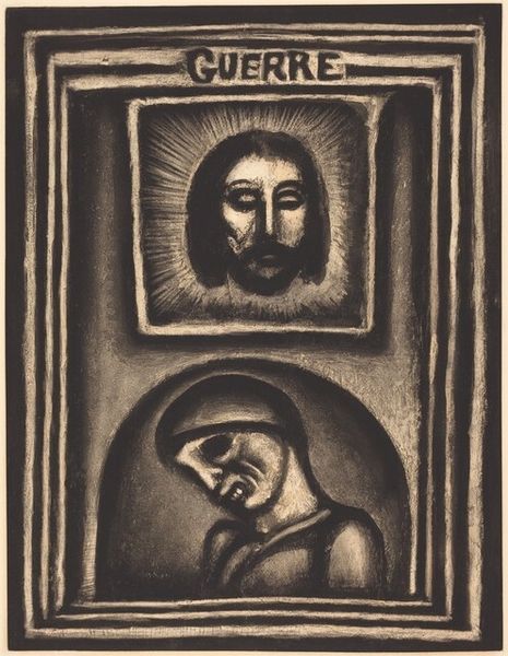 Editor: Here we have Mikuláš Galanda’s "Holy Family" from 1924, made using woodcut, it is quite evocative. I'm immediately struck by the sharp lines and the almost raw texture of the print. It feels very immediate. How do you read this piece? Curator: I see a deliberate return to the basics of art making. Look at the artist’s labor – the physical act of carving away at the wood, the direct contact with the material. It suggests a stripping away of bourgeois artistic pretension, aligning the artwork with more "common" forms of labor and production. Notice the way the woodcut flattens the image and almost dehumanizes the subjects. Why do you think Galanda would flatten the picture in this manner, almost returning to early, medieval artistic conventions? Editor: Perhaps to align the ‘holy family’ with all families who are working families - to make them more relatable, less ethereal? Do you see other aspects that reflect these principles? Curator: Definitely. Consider the historical context: 1924 was a time of great social and economic upheaval. Galanda uses accessible materials and printing methods - he made several prints like this - broadening its potential audience by utilizing cheaper and quicker production methods. This brings up questions about who has access to art, and whose stories are being told through art. Editor: It makes me think about the art world’s values themselves - are we privileging one form of artistic labour over others? Is that fair? Thanks for a fresh perspective on Galanda's woodcut, seeing it in this production light is helpful. Curator: My pleasure. Thinking about art from the ground up, from its material and labor, always unearths something.