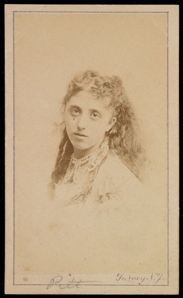 Curator: The first thing that strikes me about this portrait is its intimacy. There's a softness, almost a faded quality that brings to mind old memories and whispers of a bygone era. Editor: That's fitting, considering we're looking at an albumen print photograph made sometime between 1869 and 1874 by Jeremiah Gurney, a prominent New York photographer. This "Untitled [portrait of an unidentified woman]" captures a specific historical moment through its delicate materiality. Curator: Exactly, there’s such intentionality in capturing her image using emerging photographic processes of the time. It reminds me of a Pre-Raphaelite painting; look at how the soft focus around the edges almost venerates her, idealizing the sitter while subtly reminding you of death, a "memento mori" vibe. Editor: Absolutely, photography during this period was as much about creating a lasting legacy as it was about documentation. It's a poignant reminder of the democratizing impulse of early photography to capture the likenesses of broader portions of society, not just the elite, although accessing such portraiture was still not cheap. Who got to be represented and how became a crucial site of social and political negotiation. Curator: I'm drawn to the deliberate lack of ornate background or props, placing the sitter in near complete abstraction. By paring down the elements to solely her personhood, the photo amplifies a symbolic resonance—a modern Eve gazing serenely at some unknown, post-lapsarian world, pregnant with a quiet dignity. Editor: Or maybe the minimal presentation reveals more pragmatic social considerations of photography at the time—its industrial, financial considerations meant optimizing process through neutral staging. The very act of capturing her image within Gurney's studio implicated her, and photography's relationship to societal power structures. The democratization of portraiture carried profound weight within prevailing artistic discourses of the 19th century, changing visual culture permanently. Curator: It’s this tension between her individual presence and its greater place within culture-historical forces that resonates the most! It’s like a silent dialogue spanning across generations of viewers. Editor: A powerful piece, it provokes us to ponder how portraiture shapes historical memory and consider who has agency over constructing representation.