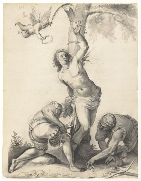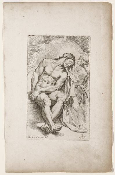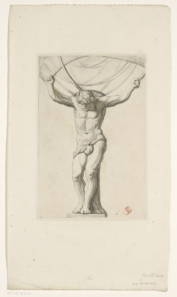 Claude Mellan created this black chalk drawing, 'Extase van Paulus' – or 'Ecstasy of Paul' – during the Baroque period. Mellan's work appears to capture a moment of spiritual transcendence. The Apostle Paul is depicted rising heavenward, surrounded by cherubic figures amidst billowing clouds. During the 17th century, the Catholic Church faced the challenge of the Protestant Reformation. In response, the Baroque style was used to create deeply emotional and awe-inspiring art which aimed to stir religious sentiment in the viewer. The ecstasy experienced by Saint Paul becomes a visual representation of divine communication. Mellan uses the male nude not just for its aesthetic appeal, but to depict Paul’s vulnerability and openness to divine experience. The image hints at a transformative moment. The drawing’s intense emotionality invites us to consider the deeply personal, yet publicly performed, nature of religious experience in a time of great ideological conflict.