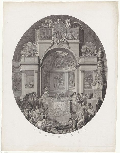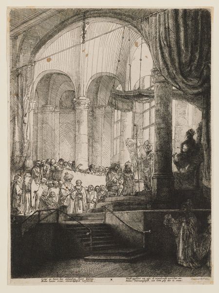 Editor: This drawing, created with ink on paper by Lambertus Johannes Hansen between 1830 and 1835, depicts the first communion in a Roman Catholic church in Amsterdam. The realism captures a moment of religious and social significance, and I'm struck by how the artist chose to represent the space. What's your take on it? Curator: It’s intriguing how Hansen renders this scene with such attention to the *process* of religious observation. Consider the *materiality* of faith itself during this era. Religious objects weren't just symbolic; they were commodities, produced, circulated, and consumed. The church, built with labor and resources, is a stage, isn’t it? The drawing captures the economic framework inherent in religious institutions. What's the role of labor in creating such spectacle? Editor: I see what you mean. The grand architecture contrasts with the kneeling children, emphasizing the church's power. Could the ink itself, the medium of production, be seen as a commentary on this contrast? Curator: Precisely. The choice of a reproducible medium, ink, hints at the dissemination of such ideologies. This wasn’t just a singular event; it was part of a continuous production and consumption of faith. Even the artist's hand is laboring to record this performance. Editor: That’s a great point! So, rather than just viewing it as a religious scene, we can also interpret it as a documentation of labor, materials, and the social structures intertwined with religious practice. I hadn't thought of that before. Curator: Indeed. Consider, too, the labor required to construct and maintain the church itself. It's a fascinating glimpse into how material culture shapes our understanding of faith. It goes far beyond just religious iconography. Editor: Thinking about the process and labor really enriches my understanding. Thank you for showing me this other facet!