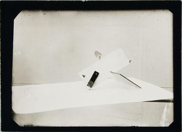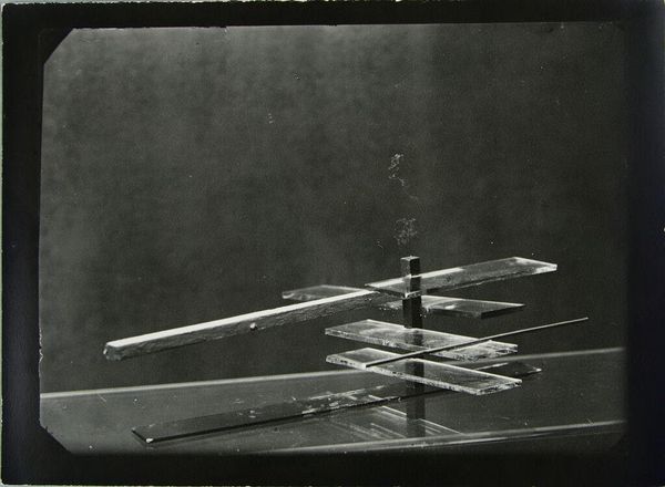 Curator: Today, we're looking at Lucia Moholy's photograph, "Study in Equilibrium," housed here at the Harvard Art Museums. Editor: It's oddly unsettling, isn't it? Stark and skeletal, like a machine stripped bare. Curator: Moholy was deeply embedded in the Bauhaus movement. Her photography played a crucial role in documenting its workshops and designs. Editor: This image has the feel of a construction site, the base components of some larger, perhaps unrealizable, object. The raw materials themselves become the subject. Curator: Absolutely. It speaks to the Bauhaus ethos of merging art with industry and challenging traditional artistic hierarchies. Editor: And think of the labor involved, the precise arrangement of these components. It's a meditation on the value of craft within the industrial age. Curator: Moholy's photographs were instrumental in shaping the Bauhaus's public image, often overshadowing the individual artisans whose work they documented. Editor: Right, the tension between documentation and artistic authorship is palpable. It forces us to question whose labor is truly being represented.