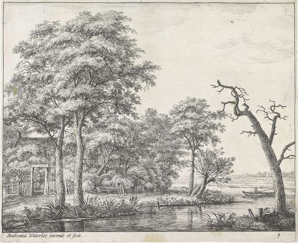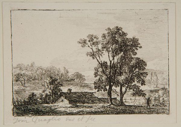 Domenico Quaglio made this landscape scene using etching, a printmaking technique, sometime in the early 19th century. Quaglio’s landscape art emerged during a period of significant social transformation, shaped by the rise of Romanticism and a growing interest in the natural world. He focused on architectural and landscape subjects, reflecting a deep appreciation for the picturesque qualities of nature. What is the relationship between the individual and nature? This question resonates through Quaglio's work. The lone figure walking along the hill emphasizes the insignificance of humanity compared to the grandeur of nature. In its emotional and atmospheric elements it reflects cultural values and ways of seeing the world in the 1800's. The artwork invites viewers to contemplate the changing relationship between people and the environment, and the ongoing dialogue between humanity and the landscapes we inhabit.