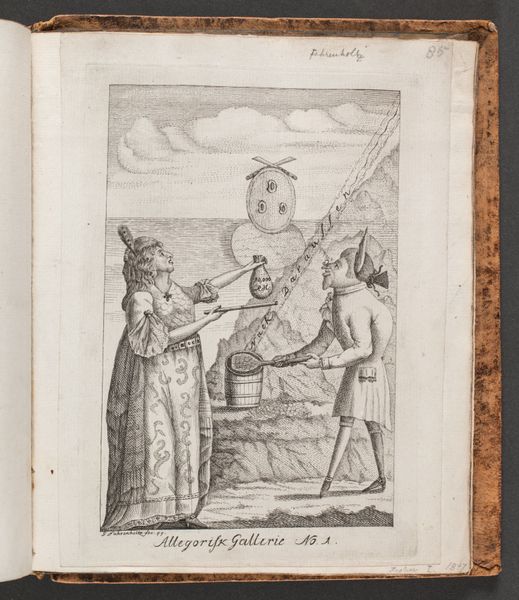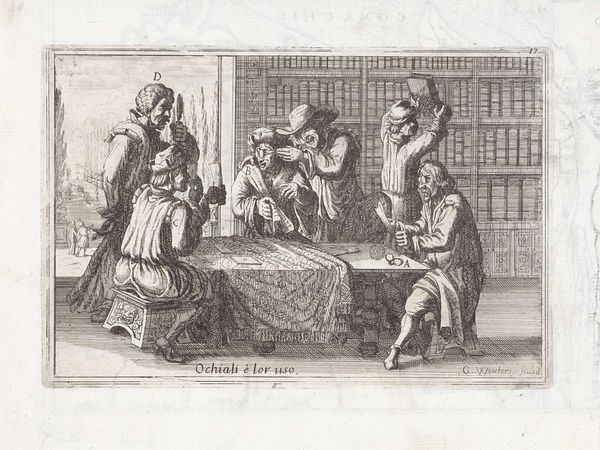 This print, "Kleine Arlequin leert lezen", presents an image of Harlequin learning to read, realized with delicate lines that define the shapes of the figures and their surroundings. The composition is structured around a central table, draped with cloth, which anchors the scene and draws our eyes to the interaction between the characters. The artist employs hatching and cross-hatching to create tonal variations, giving depth and volume to the characters, while the background fades into a lightly suggested landscape. This use of line directs our focus to the act of learning, highlighting the structural importance of education and knowledge. The print invites us to consider how simple visual structures can convey complex themes. The choice of representing Harlequin in a learning environment, disrupts traditional expectations. It suggests a commentary on social roles and the potential for transformation through literacy. It destabilizes fixed identities and invites reflection on how learning can redefine one’s place in the world.