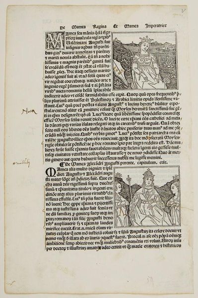 Editor: This old print, titled "Saint Conrad," is attributed to an anonymous artist. It's brimming with text and a small illustration. The scene feels quite solemn. What can you tell us about the visual language used here? Curator: As an iconographer, I am drawn to the cultural memory embedded within the image. The figure of Saint Conrad, with his staff, isn't merely a portrait but a symbol. What do his clothes and the act of people on the boat evoke for you? Editor: I am unfamiliar with those symbols, but they appear to refer to some form of religious importance. They definitely evoke themes of reverence and history. Curator: Exactly. The boat, the robes – they tap into centuries of established visual cues, reflecting the cultural values and spiritual beliefs of the time. This cultural continuity offers insight into the collective psyche of the community. Editor: That's so insightful! I hadn't considered how deeply these symbols resonate across generations. Curator: Indeed, understanding these visual languages unlocks a richer appreciation for the artwork. Each image becomes a portal into the past.