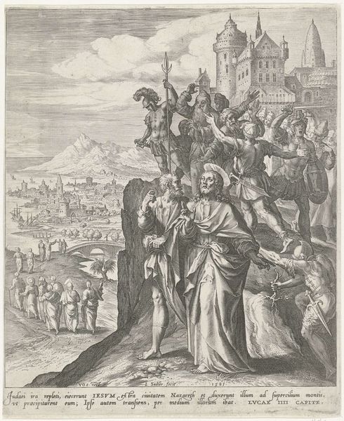 Willem van Haecht II created this print depicting the siege of Saint Ursula using the intaglio process of etching. Lines are bitten into a metal plate with acid, then filled with ink and printed. It's a process allowing for complex narrative scenes, densely populated and emotionally charged. Note the contrast of the vulnerable figures of Ursula and her followers with the heavily armed Huns, and the heavenly apparition above. Etching, like other printmaking techniques, sits at an interesting intersection of art and industry. It’s a means of mass production, allowing for the wide dissemination of images and ideas, a kind of proto-photography. Prints like these were produced in workshops, involving the labor of skilled artisans working under the direction of an artist like van Haecht. The prints were relatively affordable, making art accessible to a wider audience than paintings or sculptures. Understanding the material and the making of the artwork gives us insight into the broader social and economic context in which it was created. It's a reminder that art is not just about individual genius, but also about collaboration, craft, and the technologies that shape our world.