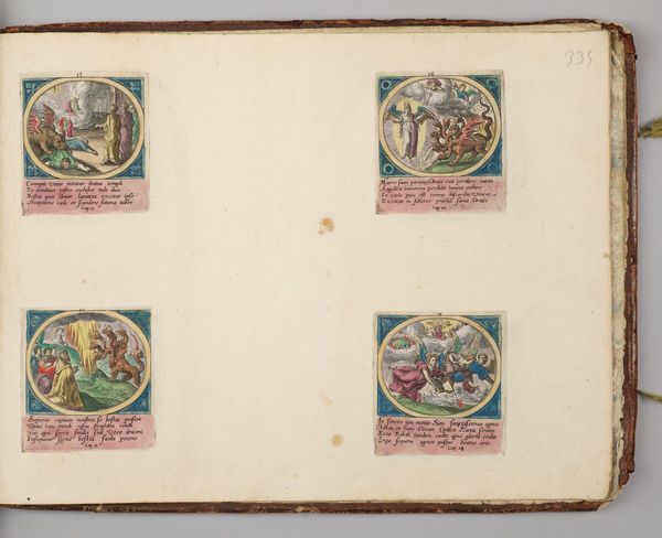 Editor: Here we have "The Opening of the Fifth Seal…" a series of miniatures by Adriaen Collaert. The scenes, bursting with figures and drama, feel like glimpses into another world. What do you make of the imagery? Curator: It's pure, unadulterated visual storytelling! Collaert's got this incredible knack for packing a whole epic narrative into these tiny frames. It's like he’s channeling a dream, pulling out these almost psychedelic images. How does it strike you? Editor: It's intense, definitely leaves you pondering. Thanks for that perspective! Curator: My pleasure!