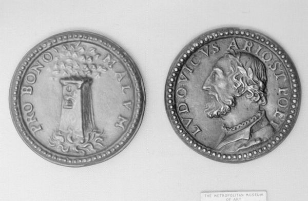 Editor: These metal reliefs, one of which is "In Honor of Nicholas Keder, the Swedish antiquarian" made in the 18th century by Johann Carl Hedlinger, strike me with their austere formality. They look like coins. What stands out to you about these works? Curator: Considering the materiality, these aren't simply coins for exchange. Medals like these often served as propaganda, tools to disseminate power and solidify social structures. Who gets immortalized in metal, and how, speaks volumes about the era's values. Think about the labor involved – the mining, the smelting, the engraving. Each step reflects social relationships and technological capabilities. Editor: That makes me consider who paid for this production and how widely were they circulated. Do you see any symbolism in their construction? Curator: Absolutely! Look at the detail. The profile portraits, reminiscent of ancient Roman coins, deliberately associate the subjects with power and permanence. Even the choice of metal – its weight, its gleam – conveys a sense of wealth and authority. How do these objects, designed for commemoration, influence our understanding of history itself? Did you also notice the decorative elements on the edge? They provide additional social context about who could afford these types of works. Editor: So, these medals are more than just portraits; they're products of a complex system of labor, material value, and social power. They help create legacy. Thanks for showing me what to consider. Curator: Precisely. By examining the medal's production, circulation, and reception, we gain a deeper understanding of 18th-century society and its values. And notice, art history can show how these processes persist today.