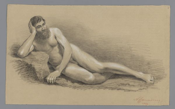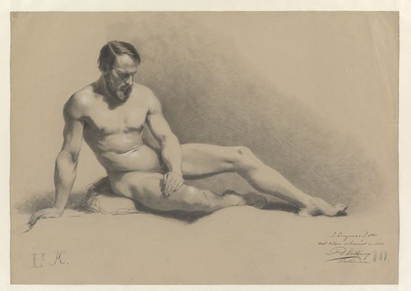 Louis-Joseph-César Ducornet rendered this Reclining Male Nude on paper, a study in form and shadow. The male figure, reclined and contemplative, presents a study in classical contrapposto. The position—one leg bent, the torso slightly twisted—echoes ancient sculptures, where such poses were used to suggest ease and latent power. Consider the symbolism of repose. Throughout art history, from sleeping Ariadne to reclining river gods, the reclining figure often embodies a state of transition or potential. Here, the man's gaze directed away, invites introspection, a dreamlike state. This echoes the endless cyclical recurrence and transformation of classical forms. The emotional power lies in the universality of contemplation. We've seen this same pose, bearing different emotional weights, across millennia. Ducornet's figure connects us to a deep well of human experience, subtly reminding us of art's uncanny ability to tap into our collective memory.