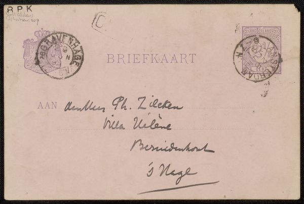 This is "Briefkaart aan Philip Zilcken," a postcard made by Willem Witsen, sometime near 1892. This material artifact gives us an intimate glimpse into the social networks of the Dutch art world. Sent to Philip Zilcken, likely by someone named Nila Hélène and originating from The Hague, its frank exchange speaks to the social and cultural values of its time. Witsen, as a member of the Amsterdam Impressionism movement, existed within a society undergoing rapid change. The rise of industrialization and urbanization influenced how artists perceived and represented the world. Here the personal and the political meet as it reminds us that behind every artwork is a web of human connections, shaped by the currents of history and society.