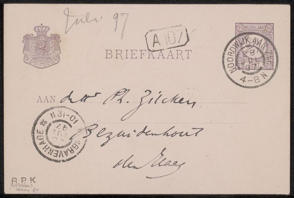 This is a 1899 postcard to Philip Zilcken by Albert Verwey, offering us a glimpse into the intimate correspondence of the fin-de-siècle art world. Verwey, a poet associated with the Dutch literary movement De Nieuwe Gids, sent this briefkaart amidst a period of artistic and intellectual ferment. The postcard format itself speaks to a shift in communication, allowing for quick, accessible exchanges. But who were Zilcken and Verwey, and what was the nature of their connection? Zilcken was an artist and art critic. These exchanges fostered a community that shaped the aesthetic and intellectual landscape of the Netherlands. Consider the handwritten script, the official stamps, and the economy of language: each element tells a story about the social rituals and personal connections of the time. It serves as a poignant reminder of the layers of history embedded in the simplest of objects. It offers us a tangible link to their world.