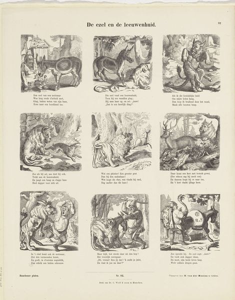 This print, "Of a Hare and Other Animals", presents a series of anthropomorphic scenes crafted by C. Reinhardt, capturing animals in human-like situations. Notice how each panel is imbued with a particular symbol. Take, for instance, the image of the hare dressed as a hunter. This motif echoes ancient fables, where animals often symbolize human traits and follies. The reversal of roles—hare as hunter—speaks to the fluid boundaries between predator and prey, strength and weakness. Consider how similar inversions appear across cultures. The cunning fox in Aesop's fables mirrors the trickster archetype found in indigenous folklore worldwide. Such recurring patterns suggest a collective human fascination with examining our own nature through the animal kingdom, tapping into deep-seated fears and desires. The emotional resonance of these images lies in their ability to provoke a sense of recognition, engaging viewers on a subconscious level. These symbolic reversals are not mere illustrations; they are a non-linear, cyclical progression, continuously resurfacing, evolving, and adopting new meanings across history.