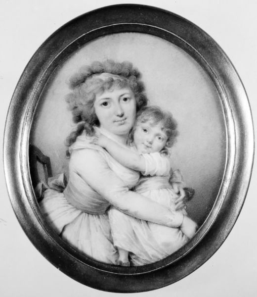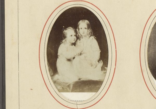Editor: Here we have Sara Peters Grozelier's "Portrait of Two Girls," created sometime between 1821 and 1907, using charcoal. There's such softness in this image, and a clear focus on the figures. How would you interpret the composition and structure of this drawing? Curator: What strikes me immediately is the artist’s focus on line and tonal gradation to create form. Notice how the delicate lines of the girls' faces are constructed through subtle variations in shading. The structure emerges not from stark contrasts but rather through meticulous manipulation of light and shadow. Consider also how the artist has arranged the figures; the placement of the taller girl’s arm around the younger one creates a circular composition, leading the eye back to their faces. This, combined with the monochromatic palette, simplifies the work down to essential forms and the relationships between them. Editor: It almost feels like the artist is more interested in the shapes and forms than any sense of individual personality. Curator: Precisely! While portraiture conventionally aims to capture individual likeness, Grozelier appears equally, if not more, concerned with exploring the abstract possibilities of the medium. Consider how the textured rendering of their dresses plays against the smoother skin tones; it's a study in contrasts of surface and texture within a limited tonal range. How might the tight cropping influence our understanding? Editor: That narrow frame really does emphasize the formal relationships, like the curls echoing the curves of their embrace. Curator: Indeed. Ultimately, "Portrait of Two Girls" invites us to appreciate the interplay of lines, shapes, and textures. The drawing encourages a contemplation of formal relationships above any overt narrative, presenting a harmony found in composition itself. Editor: That's a wonderful way of putting it; I had been so focused on what I assumed was the sentimentality of the portrait. Now I see how the forms communicate in a much more significant way.