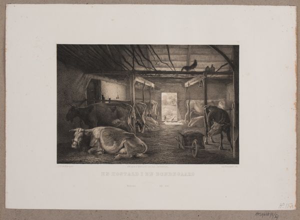 Curator: Here we have Niels Skovgaard’s 1909 oil painting, "Italiensk kostald," or "Italian Cowshed," currently held at the SMK, the National Gallery of Denmark. Editor: It's immediately striking how warm the light is—almost otherworldly. The composition feels deliberately arranged, guiding the eye through the shadowy interior. Curator: The composition does employ a strong sense of chiaroscuro, doesn’t it? The deep shadows contrasting with the brilliant light emanating from the doorway create a sense of drama and depth within this enclosed space. Editor: And think about the time it was painted; genre scenes were quite popular and offered glimpses into rural life that were very romanticized for urban viewers. Was Skovgaard presenting an authentic depiction or playing to those sensibilities? Curator: That's where the 'Italian' element becomes important. Many Danish artists were traveling through Italy at the turn of the century and finding these very scenes idyllic, very pastoral. The artistic circles in Denmark at the time felt pressure to make art both 'Danish' and 'International'. Editor: I also wonder about the animals as a central focus. There are so many, crowded together, that all display the variety of shades he's chosen for the palette. The light, particularly, glimmers in those tones. The soft lines of the painting show no sharp edges. The entire visual experience comes across as delicate and subtle. Curator: I agree, and I think focusing on the interplay between the organic shapes of the cows and the rigid architecture, really contributes to the dynamic tension within the work. Even something as subtle as the small cat against the glowing doorway contributes to the painting's structure. Editor: It feels as though Skovgaard wanted to highlight not just a simple barn scene but perhaps a larger sense of harmony between the animals and their constructed environment, while showcasing his mastery of light and texture. Curator: Yes, a harmonious relationship mediated, it seems, by that intense yet inviting light. The whole work really epitomizes the artistic cross-currents happening at the time.