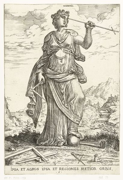 Editor: This is "Femme de Naple allant par la Ville," from 1662. It's an anonymous engraving on paper, held at the Rijksmuseum. I'm really struck by the details in her clothing, particularly contrasted against the landscape. How do you interpret the artist's choice of materials and subject matter? Curator: What I notice here is how the printmaking process itself flattens social strata even while depicting it. The lines, the material of ink on paper – it’s all the same whether representing the noble or the common. Think about how that contrasts with, say, an oil painting commissioned by the elite. The labor is quite different, the cost, and therefore who has access. Does that contrast change how we perceive the woman depicted? Editor: That’s interesting! I hadn't thought about the medium itself playing a role in shaping the narrative. The wide distribution that's possible for printed materials gives access to a broad public. Curator: Exactly! And how does that accessibility change the artwork's cultural function? This image, reproduced and disseminated, potentially enters many homes, influencing ideas about identity and even aspiration. We can almost see a snapshot of the Baroque period and consumption by the masses, far beyond aristocratic collections. Do you think this could impact future art historical studies, even if only subtly? Editor: Definitely. It adds layers of meaning to the woman's clothing, no longer a signifier of personal wealth, but of something else - aspiration or even role play. It's almost a form of early fashion photography. Curator: Precisely. Examining the means of production forces us to consider what this image meant, not just to its subject or creator, but also to its consumers. Material analysis expands into cultural significance. Editor: I’ll definitely look at art through a more material lens going forward. This changes everything! Curator: Agreed! Thinking through materiality connects art to the broader social and economic realities.