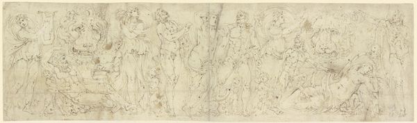 This delicate drawing of female figures was made by John Flaxman, likely in the late 18th or early 19th century, using graphite on paper. The medium of graphite lends itself to the ethereal quality of the image; the figures seem to emerge softly from the page, their forms barely defined. Graphite is a relatively accessible material and drawing is immediate. This suggests that the artist was less interested in the laborious refinement of a painting, and more in capturing a spontaneous idea. Note the contrast between the lightly sketched figures on the left, and the more defined group on the right. You can imagine Flaxman working swiftly, exploring different arrangements and poses in the same composition. This speaks to the value placed on preparatory sketches and the exploration of ideas. Ultimately, this drawing invites us to appreciate the beauty and skill inherent in simple materials and processes. The artist's hand is evident in every line, revealing the intimate connection between artist, material, and idea.