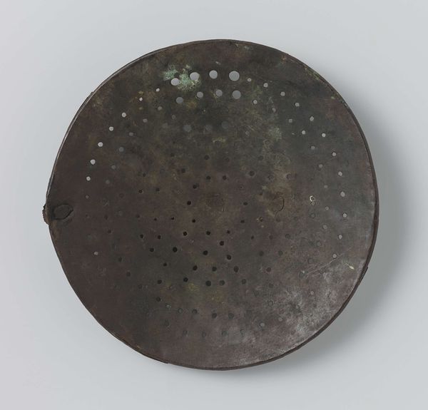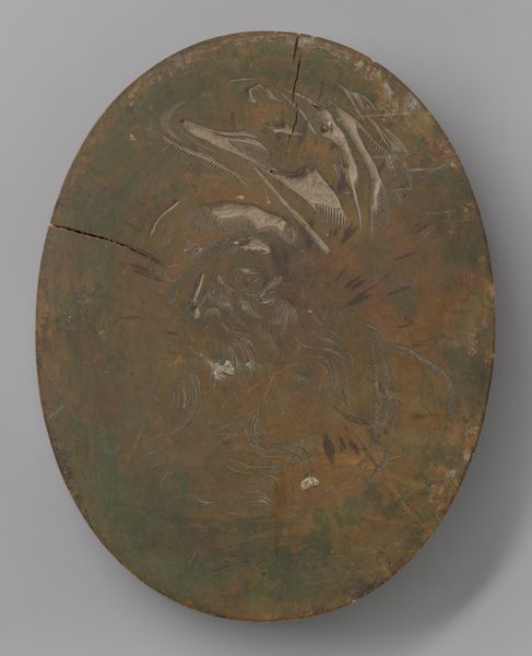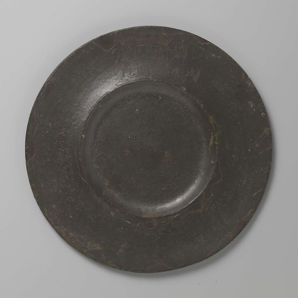 Curator: Here we have a nineteenth-century plaque created by Elkington & Co. Currently housed at the Metropolitan Museum of Art, it appears to be fashioned from metal with an intricate engraved design. Editor: The craftsmanship certainly is arresting; I am drawn in by the play of light and shadow on the textured surface. The dense ornamentation gives it a somewhat weighty feel, doesn’t it? Curator: I agree, although I'm particularly interested in the societal factors influencing decorative arts during this era, such as colonial exhibitions that presented highly stylized cultural commodities for the global market. It is relevant to ask if this plaque was part of an intentional cultural narrative aimed at its consumers. Editor: That’s a fascinating entry point, but look at the rhythmic patterns that spiral inward. Consider how the artist created definition by offsetting busy sections with smoother zones. The relationship of these shapes establishes balance. Curator: Still, shouldn't we explore the plaque as a signifier? The very act of its creation and acquisition likely represented power dynamics shaped by colonial projects. How does this piece reflect on, and perhaps reinforce, such hegemonies? Editor: Fair point, yet I believe the immediate visual impression cannot be overlooked. Note, for instance, the sophisticated way the circular format accentuates the overall harmony. It almost forces one's gaze into an endless orbit of design elements. Curator: I concede the craftsmanship possesses artistic value, but this only strengthens my curiosity concerning what types of historical and political ideologies influenced its function as decor in its intended location. Whose gaze was this created to satisfy, and at what social cost? Editor: Well, I appreciate both the immediate, sensory richness and the broader intellectual discourse this piece prompts us to contemplate. Curator: Exactly! These artistic artifacts embody profound historical perspectives worth deconstructing from myriad angles.