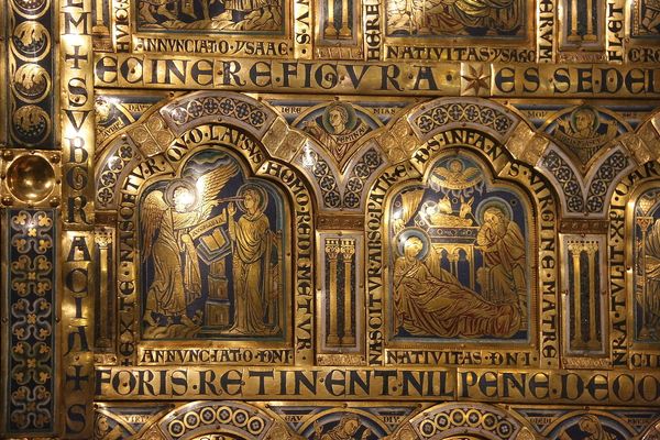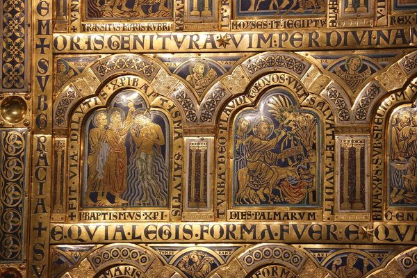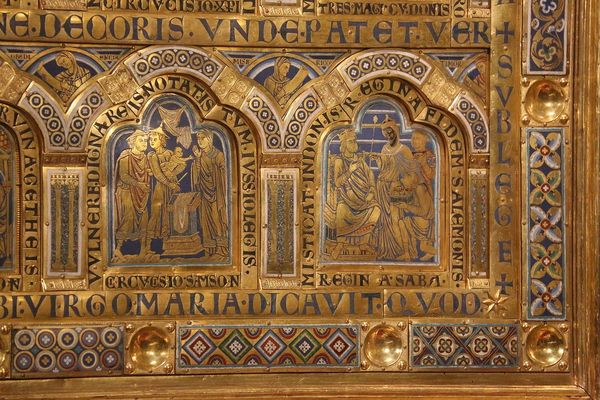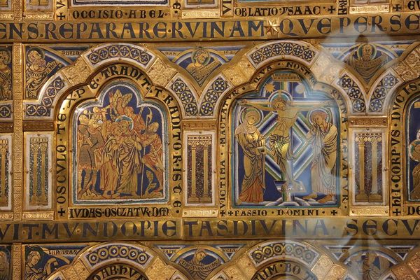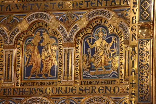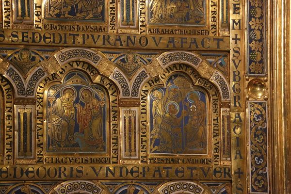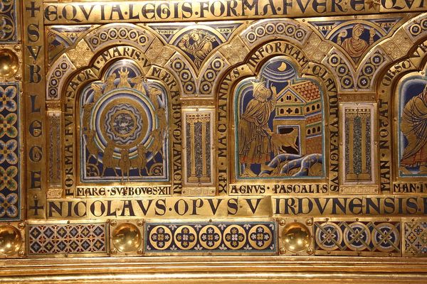 The Klosterneuburg Altar was created in the 12th century by Nicholas of Verdun using gilded copper and enamel. Its creation occurred during a period of significant religious and political change, influenced by the rise of scholasticism and the complex relationships between the Church and state. The altar presents a visual and theological narrative. The altar's panels are organized thematically, drawing from both the Old and New Testaments. The meticulous craftsmanship and the use of costly materials speak to the wealth and power of the Church. The piece is replete with symbolism that would have been readily understood by the educated clergy, who were the primary audience for such works. The inscription emphasizes the shift from the Old to the New Covenant, reflecting a Christian interpretation of history. Consider the physical experience of encountering this altar in a dimly lit church, the gold glinting in candlelight, the stories unfolding in rich color. This artwork provided a focal point for contemplation and devotion, shaping the spiritual lives of those within its sphere of influence.