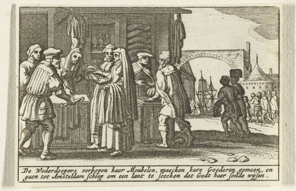 Editor: This is Jacques Callot's miniature etching, "Translation of the Body of Saint Augustine." It feels so small and precise. All those tiny lines creating a sense of reverence. What do you make of this scene? Curator: The detail is captivating, isn't it? It whispers of a world steeped in ceremony and faith. I see a delicate balance between the earthly and the divine, captured through Callot's skillful hand. Notice how the oval frame almost mimics a saint's halo. Editor: That's a lovely connection! It makes the scene feel even more sacred. I hadn't noticed that before. Curator: Sometimes, the greatest stories are told in the smallest of spaces, wouldn't you agree? Editor: Absolutely! Seeing it this way, I appreciate the art of etching even more.
