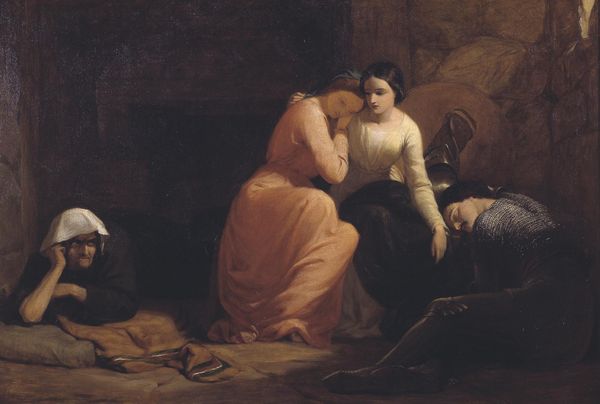Francesco Hayez painted "Louis XIV and Mademoiselle de La Vallière" with oil on canvas, capturing a moment of high drama. The composition is structured around contrasts: the cool, muted tones of the architectural background versus the warm, vibrant hues of the figures' attire. This contrast immediately draws our eyes to the emotional core of the scene. Notice how Hayez uses light to emphasize the psychological tension. The stark illumination on Mademoiselle de La Vallière, clinging to the cold stone pillar, highlights her distress. This is sharply juxtaposed with the shadows that partially conceal Louis XIV, suggesting a moral ambiguity in his actions. The arrangement of figures—the distraught woman, the pleading king, and the observing figure in the background—creates a tableau of conflicting emotions. Through these formal choices, Hayez invites us to consider the power dynamics and moral complexities inherent in the scene, transforming a historical anecdote into a study of human relationships under pressure.