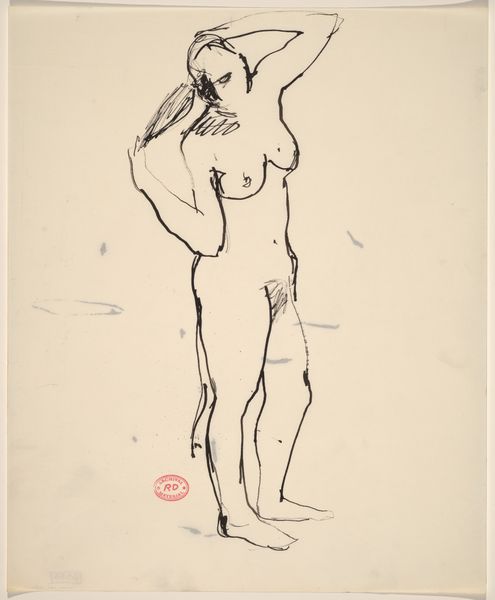 Richard Diebenkorn made this drawing of a female nude in contrapposto with what looks like charcoal or maybe a soft pencil. It’s all about the process, right? The way the lines build up, searching for the form. I love how Diebenkorn's marks are so direct, you can almost feel his hand moving across the paper. The weight of the lines varies, some are bold and sure, others are light and tentative. The ones around the shoulder, they give you the sense of a solid, three-dimensional form. And then, look at the way he suggests the curve of her hip with just a few strokes. It's economical, but so full of information. It reminds me of Matisse's drawings, that same sense of capturing the essence of a form with a minimum of means. But, Diebenkorn has his own thing going on, a kind of West Coast coolness. It's like he’s saying, "Here's a body, but it's also just a bunch of lines on a page." And that's the magic of drawing, isn't it?