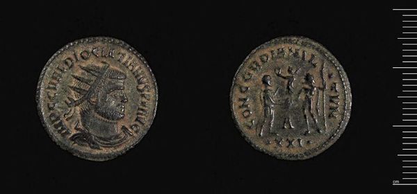 Curator: Here we have a coin, an AE3 of Constantine I, minted in Siscia. Its weight is just under 3 grams. Editor: It feels weighty, doesn't it? The patina gives it a lovely, aged feel. Curator: Indeed. Coins like this were not just currency, but powerful propaganda tools. Consider the location, Siscia; it was a key mint in the Roman Empire's Balkan region. Editor: The scale is fascinating. What impact would such a tiny object have on people? Curator: Immense. The image of Constantine, circulated widely, reinforced his power and imperial authority. It’s a testament to the enduring influence of even the smallest artifacts. Editor: I appreciate understanding the social context. It transforms the coin from a mere object into a historical artifact. Curator: Precisely. Each coin tells a story of power, production, and the politics of imagery.