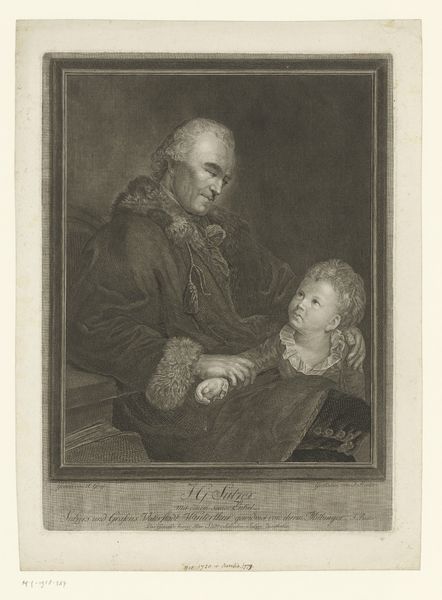 Editor: This is Edward Smith's "Lady and Child." I'm struck by the textures rendered, especially in the woman's dress and the child’s hat. What can you tell me about the process and materials used here? Curator: The intricacies of the fabric and the garments speak to the means of production available at the time. This work likely involved skilled artisans creating detailed patterns and textures, reflecting a complex system of labor and consumption within 18th-century society. How do you think the artist's process elevates or perhaps challenges traditional craft hierarchies? Editor: It's interesting to think about it in that light. I hadn't considered the labor involved. Thanks for the insight!