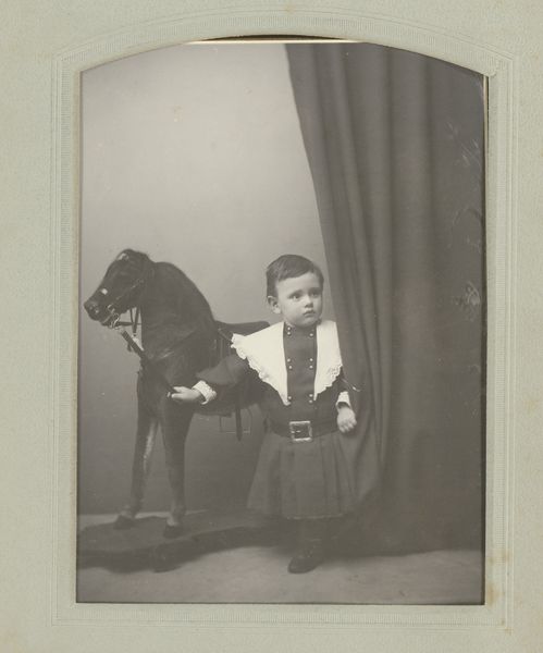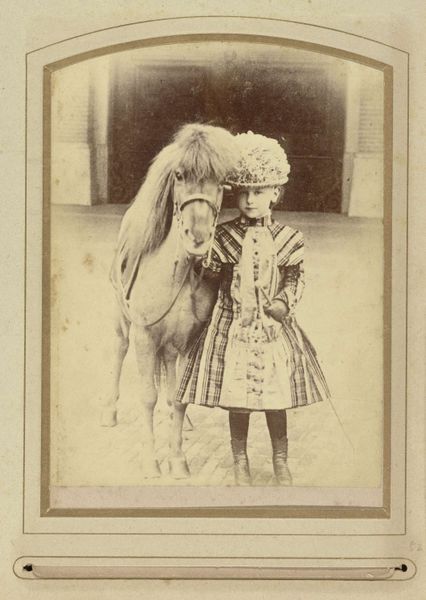 This is a portrait of Princess Wilhelmina with her pony, made by Kameke, though the date of creation is unknown. Portraits of children were incredibly popular during the late 19th century. Wilhelmina, the only child of King William III, became queen at the young age of 10. This image captures a very young Wilhelmina, likely around the age of six or seven. She stands stiffly next to her pony, dressed in a highly structured and ornate plaid dress with a large, flowered hat. In this photograph, Wilhelmina is depicted in clothing that mirrors adult fashions, indicating the weight of the crown she would eventually wear. This image raises questions about the loss of innocence. How does one balance the need for personal freedom with the demands of royal responsibility? It evokes a feeling of melancholy, an uneasy blending of childhood innocence with the looming responsibilities of power. The photograph serves not only as a personal memento but also as a carefully constructed representation of royal identity.