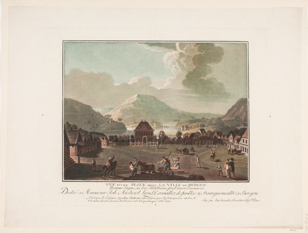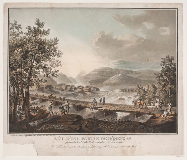 "Monument à Strikklestad" is an engraving by Georg Haas, who was born in Copenhagen in 1756. Haas lived during a time of significant political and cultural change, as Europe was grappling with Enlightenment ideas and the rise of nationalism. This print depicts a monument erected to commemorate a pivotal event in Norwegian history; the death of King Olav. The monument becomes a focal point, drawing attention to its role in shaping national identity and collective memory. Looking at the people in the foreground, we can see figures from different social classes. Consider the artist's intent in portraying this social hierarchy and how it reflects the broader power structures of the time. Haas invites us to consider how monuments and historical narratives are constructed, and whose stories are elevated in the process. The print makes us think about nationhood and the politics of remembrance.