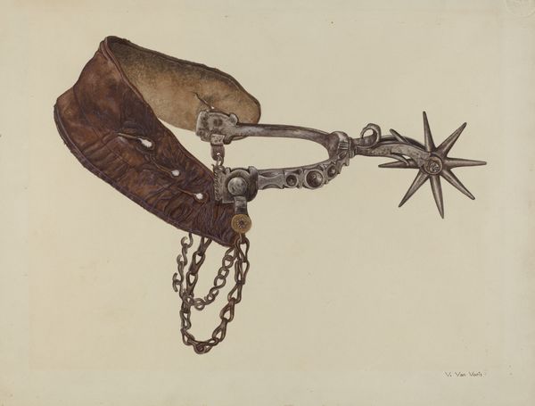 Vera Van Voris made this watercolor and graphite drawing of a spur during the twentieth century. A spur is a metal tool worn on the heels of riders and used to make a horse move forward or faster, so this image might prompt us to reflect on the relationship between humans, animals, and technology. Van Voris was an American artist, and the imagery of the spur has deep associations with the culture of the American West, evoking a period of territorial expansion, cattle ranching, and conflict with Native American populations. We might think about the mythology of the cowboy, and its place in the culture industries of the twentieth century; considering the importance of the Western genre in Hollywood movies, for example. To better understand the image, we might look at museum collections of cowboy gear or study photographs from the period. We might ask, what did it mean for Van Voris to picture this object, with its complicated historical associations? The meaning of art always depends on its social and institutional context.