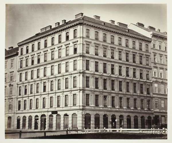 Editor: Here we have an interesting print from the 1860s titled "Kärnthnerstraße No. 59, Zinshaus des Herrn Sam Maeir." It's made from silver using the daguerreotype process to create a photograph. What immediately strikes me is how the photo captures such a detailed slice of urban life. How do you interpret this work? Curator: Well, considering the materiality of the daguerreotype – that highly polished silver-plated copper – it’s crucial to acknowledge how that surface itself becomes part of the reading. The process demanded precision and unique handling; it wasn't just about pointing a lens. Think of the labor involved in preparing that plate, then in setting up the shot itself, and, of course, the developing. Notice how the built environment around Sam Maeir reflects not only affluence but a specific relationship to labor and industry during that time? Editor: That's a perspective I hadn’t considered, the labor and the making of it all. So, looking at the buildings, are you saying their very presence signifies a specific social and economic structure of labor? Curator: Precisely. These aren't simply buildings; they’re manifestations of industrial capital, from the mining of the silver for the image itself, to the construction of those buildings which provided housing for the working class or spaces for new commercial efforts, that the silver captures. Consider how these resources would have been mined and shipped for processing and manufacture. In that way, doesn’t the photograph offer an implicit critique about social division? Editor: I guess it does. I was initially drawn to its historical context and visual style, but understanding the material processes and economic context really adds another layer of significance. Thank you for helping me think about the impact that the materials and modes of production had at that time! Curator: My pleasure! By focusing on the materiality, we understand how the silver image, in effect, testifies to Vienna's rapid social changes.