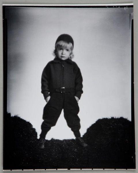 This undated photograph of a young boy in a black turtleneck, sitting with legs crossed and chin in hand, was made by Paul Gittings. We know Gittings was a portrait photographer known for capturing the likenesses of prominent figures. In this light, this image begs the question: is this an ordinary boy, or someone destined for greatness? He is styled in a manner which reflects wealth and status. His pose, with his chin resting thoughtfully on his hand, is reminiscent of traditional portraits of philosophers and thinkers. But here, these symbols are embodied in a child. It’s interesting to think about how portraiture, historically reserved for the elite, shapes our perceptions and aspirations. Does this photograph democratize the genre, or does it reinforce existing power structures? Regardless, the emotional impact is palpable; the boy's gaze invites viewers to consider themes of innocence, potential, and the weight of expectation.