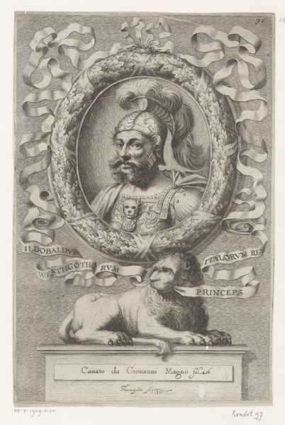 Axel Theodor Kittendorff created this print of Christian IV, using a technique called etching. Think of etching as a kind of controlled scratching. The artist coats a metal plate with a waxy, acid-resistant substance, then uses a sharp needle to draw through it, exposing the metal underneath. The plate is then immersed in acid, which bites into the exposed lines. This painstaking process allows for incredibly fine detail, visible in the king's laurel crown, the folds of his robes, and the determined set of his jaw. Prints like this one would have been relatively accessible to a middle-class audience, who could consume images of their leaders without commissioning an expensive painting or sculpture. The production process itself, involving labor and materials, connects this image to broader social and economic forces. Looking closely at the etched lines, we can appreciate the skill involved, and consider how such a work blurs the lines between art, craft, and the reproduction of power.