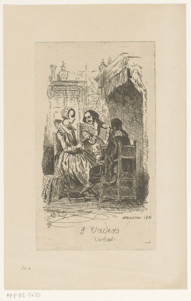 Editor: Here we have Honoré Daumier's "The Grape Gatherer, from Les Bons Bourgeois," a lithograph from 1847. I'm immediately struck by the sharp contrast between the figures and the simple, almost caricatured style. What historical context shapes how we should view this image? Curator: Considering Daumier's work within its historical context is crucial. He was a master of social satire, and prints like this were often published in newspapers like Le Charivari. We have to remember the political climate; France was on the cusp of revolution in 1848. How do you think the title "Les Bons Bourgeois," the "Good Bourgeois," might play into this sociopolitical backdrop? Editor: So, not really ‘good’ at all. Satire implies the opposite! I guess it’s meant to critique the values, maybe even the idleness, of the middle class? Curator: Precisely. Notice how the composition directs your eye – from the bending man precariously picking grapes down to the woman, waiting below with the basket. Daumier frequently critiqued the social hierarchy, and the accessibility of print media allowed these ideas to circulate widely. Do you see an implied narrative in this seemingly simple scene? Editor: It definitely feels like a slice of life, but with an edge. Are we meant to question who benefits from this labour? Is the woman rushing to get the harvest done before sundown? Curator: Possibly! And the very ordinariness of it makes the commentary more potent. He captured the details of everyday life to reflect on power dynamics of 19th-century French society. These works challenged the established norms and prompted critical reflection in the public sphere. Editor: So it’s less about the grapes and more about the grind, viewed through a political lens? Curator: Exactly. Looking at Daumier through this lens enriches our understanding of how art can engage with social and political discourse. I never thought about this piece as something 'political' and not domestic before, very illuminating.