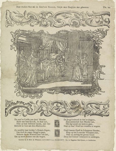 This print, made by erven weduwe Cornelis Stichter, presents us with a scene filled with curious figures and objects, rendered in delicate lines and a muted palette. The composition invites us to consider the absurdities of fashion through its detailed depiction of people and their surroundings. The print’s structure hinges on a contrast between the detailed foreground and a more loosely sketched background. The foreground is populated with figures engaged in various activities related to fashion and social display. These figures are meticulously rendered, allowing for a semiotic interpretation of their roles and interactions. The background, with its suggestion of landscape and architecture, serves as a stage for the unfolding drama. The use of line is particularly striking. It defines shapes and textures, creating a sense of depth and volume. This technique allows for a critical commentary on the fleeting nature of trends and the social performances they inspire. The print invites us to question the values and categories that underpin social life, reminding us that art is always a site of ongoing interpretation.