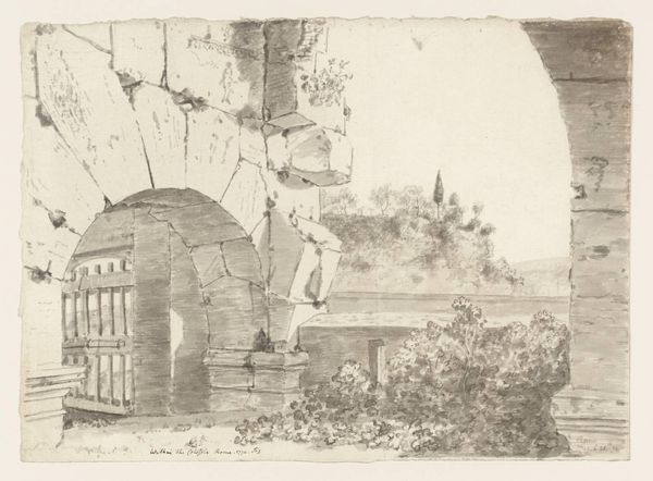 Curator: We're looking at "Colosseum te Rome," an engraving created around 1729 by Jacobus Baptist, housed here at the Rijksmuseum. Editor: Immediately, I’m struck by the somber mood despite the grand subject matter. The intricate cross-hatching creates deep shadows, emphasizing the Colosseum's state of decay. Curator: Indeed. Baptist’s print offers insight into the 18th-century Roman fascination with ruins, a popular subject throughout the artistic movements of the time, acting almost as memento mori of civilizations past. Notice the deliberate use of perspective to frame the distant structure against the looming foreground arches. Editor: The formal composition certainly draws the eye to the Colosseum itself, yet the texture rendered from such fine lines creates a tactile presence in the remaining architecture. This sharp contrast establishes a dialogue between absence and presence, doesn’t it? Curator: Absolutely. The technique speaks volumes. Engravings, with their reliance on precise lines, were often used to disseminate architectural and archaeological knowledge to a wider audience. Consider the historical context—the Grand Tour was in full swing, and such prints served as souvenirs and documents for traveling aristocrats. They visually participated in the popular trend. Editor: It's interesting how the diminutive figures within the archway contribute to a sense of scale and history. It prompts questions about spectatorship and how we relate to these remnants of bygone power structures. Does this suggest, perhaps, the ephemerality of human achievement set against nature? Curator: That’s a perceptive point. There’s a certain Romantic sensibility at play even this early, an appreciation for the sublime power of time and nature to transform even the grandest structures. Editor: Looking closer, the decaying masonry almost obscures the intended order of the Colosseum’s design, and one could read it as an emblem for both beauty and the historical contingency. Curator: The enduring appeal of the Colosseum has led to it serving diverse socio-political forces over time. Baptist’s rendition invites contemplation about what that ruin symbolizes within Rome's—and Europe’s—cultural landscape. Editor: Indeed, reflecting on its detailed textures has offered me insight into how the architectural form speaks on resilience, endurance and loss, across centuries of social evolution.