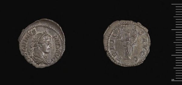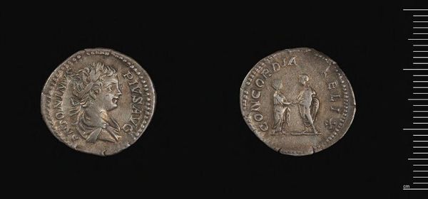 Curator: Here we have a Denarius of Severus Alexander, currently held in the Harvard Art Museums. Editor: Its surface is quite worn, but the material seems fairly consistent. I wonder about the skill of the die maker. Curator: Coins like these were not only currency, but also potent symbols. The emperor's portrait, wreathed in laurel, projects power, divinity, and victory. Editor: The silver itself matters too. Consider the mines, the labor of extraction, and the political control over these resources. Curator: Absolutely. The figure on the reverse continues the theme of imperial authority. These images shaped perceptions, influencing the collective consciousness. Editor: Indeed. It's remarkable how much socio-political weight is literally impressed upon this small piece of metal. Curator: Studying these symbols unlocks a deeper understanding of Roman imperial ideology. Editor: And by considering the material processes, we recognize the tangible realities behind that ideology.