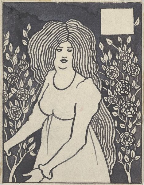 Curator: Oh, this is one of Artuš Scheiner's drawings, meant as an illustration for "Fairy Tales For Adults." I always feel a chill when I see it—a good chill! Like a dark, dreamy fairy tale. Editor: My first thought is moonlight. The palette is so limited— stark black and white—but it feels expansive. The reeds seem to surround the figure almost protectively, or perhaps threateningly. Curator: Precisely! The high contrast really amplifies the symbolism, wouldn't you agree? And it enhances the emotional tension too. It feels a bit... spectral. The lines, the sharp reeds contrasting the softer silhouette of the figure... It’s pure magic. Editor: It speaks to the complicated role of women in folklore. Often depicted as these almost ethereal, but dangerous figures tied to the natural world. There’s an obvious vulnerability in the nudity but the upward gaze and solid hair makes it seems powerful as well. This prefigures so much discourse in feminism on female agency and reclaiming power. Curator: Ah, yes, that tension. This particular image has that strong sense of symbolism you would expect in fairytale artwork—the moon, of course. I imagine the artist really had a chance to infuse the stories with meaning through this particular illustration. The reeds framing her, almost isolating her… I find that so captivating. And the simplification, the spareness of detail... it allows your own imagination to fill in the gaps. Editor: Definitely. And to consider it through a contemporary lens, it evokes conversations about environmentalism and the female body being intrinsically tied to nature, even if problematically so at times. There's an eco-feminist reading to be made here for sure. What strikes you as most contemporary about it, stylistically? Curator: Hmmm...perhaps its openness? The suggestion of a narrative without a clear resolution. Or maybe that direct gaze – even though we cannot see her eyes, her directed stare pulls me right in. You're left wondering...what happens next? Or better yet, what just happened? Editor: Yes. The narrative ambiguity is its power. It leaves space for the viewer to grapple with the interplay between vulnerability, resistance, and nature. Ultimately a space to meditate on our complicated reality. Curator: Wonderfully put. Art like this reminds me that fairy tales aren't just for children. Editor: Agreed. It's a potent image, a reminder of how art can provoke complex thought.