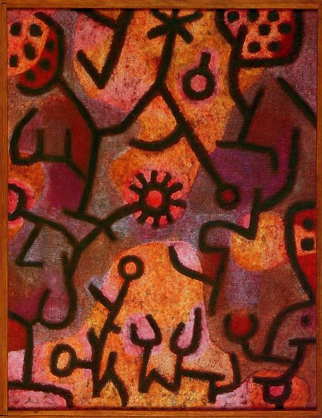 Paul Klee, sometime in his career, made this piece, "Forest Witches," maybe with gouache, or watercolor, or something like that, but look at how he draws. It's all about a childlike process. He's working with color to generate a kind of earthy, almost alchemical mood – you can almost smell the forest floor. The paint is applied in thin washes, allowing the paper's texture to peek through, lending a sense of transparency and lightness to the composition. I see figures, maybe the titular witches, rendered in a semi-abstract way, their forms suggested by simple lines and shapes. Look at the way he uses the black outline to define the shapes, giving them a graphic, almost cartoonish quality. It's a bit like looking at a children's book. Klee’s work always reminds me of Miró or maybe even Guston, that shared sense of whimsy, and the way they both embrace ambiguity. We're not meant to decipher a fixed meaning, but to engage with the image on an intuitive level, letting our imaginations fill in the gaps.