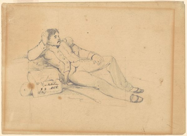 Johan Fredrik Martin created this print of 'Tadeusz Kościuszko op een ligbed' using etching techniques. The composition centers on Kościuszko reclining, his figure framed by the stark lines of the daybed and the geometric backdrop of the wall panels. Note how the artist uses a subtle tonal range achieved through fine, closely-knit lines. This emphasizes the texture of the fabric and the soft contours of Kościuszko's form. The horizontality of the bed contrasts with the verticality of the wall, creating a balanced yet dynamic visual structure. The etching’s linear precision, typical of its time, reflects Enlightenment ideals of order and clarity. The formal restraint and delicate execution are not merely aesthetic choices; they represent the subject's state of repose. The act of reclining is symbolic, suggesting a moment of reflection or recovery. This image functions as both a historical record and an artistic interpretation, inviting viewers to contemplate the relationship between form and content.