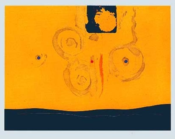 Adolph Gottlieb made this untitled painting with paint on paper, and right away I'm drawn to the juicy simplicity of it. The bright yellow ground pops, making the dark blue marks jump right out at you. Looking at it, I’m thinking about how important the physical act of painting is. It’s not just about ideas, it’s about how the paint feels as it moves across the surface. Here, Gottlieb lays down these confident, sweeping gestures that feel so immediate. The paint isn't too thick or too thin, but just right, capturing the energy of the moment. Notice that little splat up top. For me, that's the whole painting. It is like a record of a fleeting moment, a spontaneous act frozen in time. Gottlieb's work reminds me a bit of Joan Miró, especially in the way they both use simple shapes and forms to create a sense of playfulness and wonder. Ultimately, art is all about conversation, about building on what others have done before, and leaving room for the unexpected.