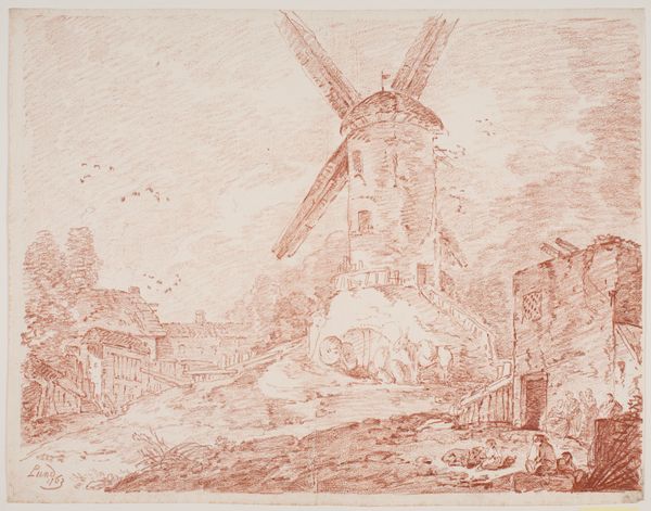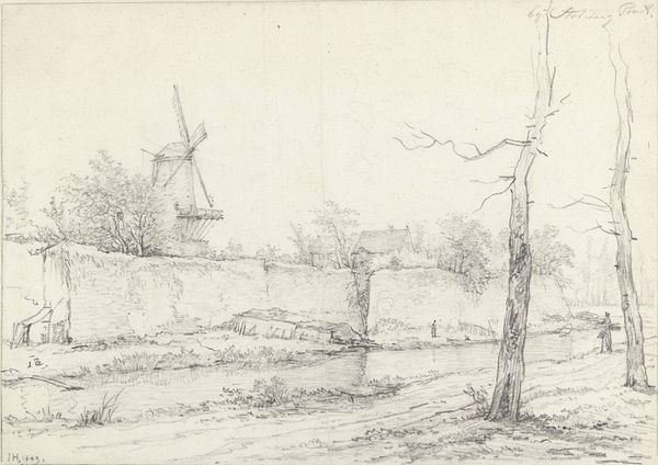 Jan van Goyen made this drawing, "Landskab med en mølle," with pen and brown ink. It's a scene dominated by a windmill, a structure crucial to the Dutch economy of the 17th century, as they were used to drain the land for agricultural use. Van Goyen's choice of medium emphasizes the importance of direct observation and skillful handiwork. The brown ink, fluid yet precise, captures the texture of the buildings and the landscape with remarkable economy. Look at how the artist has created the illusion of depth, using the thinness of the lines to his advantage. Drawings like these were not just preparatory studies, they were also commodities. Sold to collectors interested in the Dutch landscape, they became a symbol of national pride. This drawing is an example of how art and commerce intertwined, celebrating the industrious spirit of the Netherlands. It challenges any separation of fine art and craft, highlighting the value of skilled labor and the beauty found in everyday life.