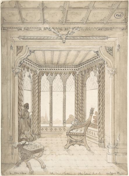 Editor: So, this is John Carter’s "Lea Castle, Worcestershire, Saloon, Looking North," created between 1811 and 1821, rendered in watercolor. It feels almost like a stage set, this meticulously planned interior. What stands out to you? Curator: I see a potent articulation of power, subtly embedded in domestic space. Consider the architectural style, the carefully positioned furniture, and the portraits adorning the walls. How do these elements contribute to a narrative of class and social hierarchy? Editor: I hadn't really thought about it like that, but I suppose the architectural style definitely evokes a certain grandeur. I’d just seen it as pretty. What is it about the space that really speaks to power? Curator: The neoclassical architecture itself is a visual language. Its association with the Enlightenment and ideals of reason served as a means for the elite to assert their authority, through their cultivated taste and inherited wealth. And those portraits - who do you think they depict? What stories are told by *excluding* others? Editor: Presumably, ancestors. Now I'm also wondering about the lack of any human figures populating the room. It makes it feel austere and almost intimidating, even though the colours are quite muted and soft. Curator: Exactly! The absent figures speak volumes about who this space was *really* designed for: not for lived experience, but for the performance of status. A space designed to inspire awe and solidify class boundaries. Editor: So, by depicting this grand, empty saloon, Carter is not just documenting architecture, but also highlighting the socio-political dynamics of the time. I will think about interiors very differently from now on! Curator: Precisely. And isn't it compelling how art can offer insights into social dynamics of class, race, and gender that still resonate today? It asks us to think critically about the spaces we inhabit and whose voices are amplified within them.