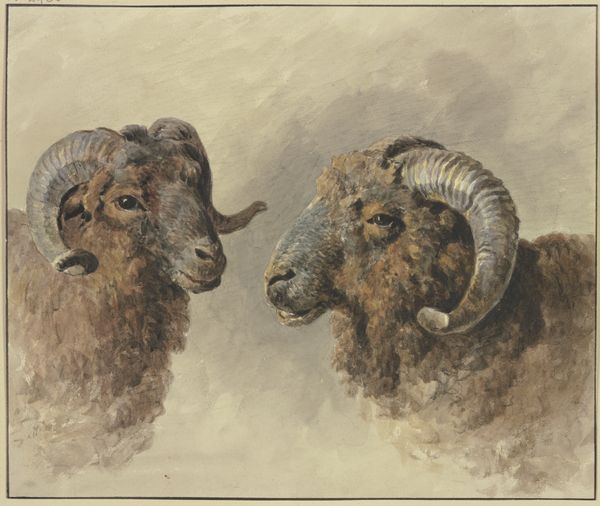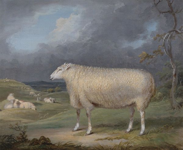 Editor: Rosa Bonheur’s oil painting, "Three Wooly Sheep," presents these farm animals with a real sense of character. They seem so…present, almost posing. How do you interpret this work considering its time and the art world of its time? Curator: This painting challenges the academic hierarchy of the time. While history painting and portraiture were valued most highly, Bonheur, a woman artist, focused on animals, elevating them as worthy subjects. It's realism tinged with romanticism; she paints the sheep as individuals, perhaps reflecting contemporary interest in rural life. The composition almost humanizes them, don't you think? It brings into question what purpose did animal painting have in relation to society at this time? Editor: I see what you mean about elevating the subjects. Did Bonheur’s gender impact her artistic choices and reception? Curator: Absolutely. As a woman, the art world restricted her, yet her focus on animal painting, often considered a lesser genre, afforded her more freedom. Consider how social structures often push marginalized people into overlooked areas, which can then become spaces of unexpected innovation and power. And her critical success pushed boundaries for female artists, even if it happened within certain pre-defined subject matter. Editor: So, even within limitations, she found a space to make a statement. That gives me a lot to think about regarding how artists navigate societal expectations. Curator: Precisely. And hopefully will lead you to look deeper in to the public and political aspects of paintings and artwork as you develop your ideas in history of art!