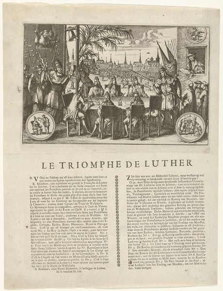 This etching, made around 1701-1713 by an anonymous artist, depicts a scene titled "The French Shrove Tuesday" ("De Franse Vastenavond"). It presents a window into the social and political tensions of the era. The carnival setting, traditionally a time of revelry and role reversal, becomes a stage for critiquing French society. The figures engage in acts of satire and protest, possibly reflecting anxieties around class, gender, and power. Are these representations maintaining traditional narratives, or offering alternative perspectives? Consider the dialogues and debates that might have occurred amidst the masked figures. How does the artwork invite us to reflect on the nature of identity, resistance, and cultural expression during this period? It is up to you to see how this image shapes or reflects societal issues.