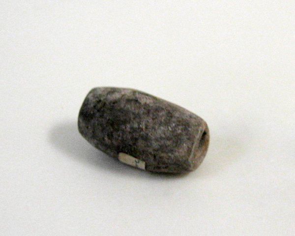 Editor: So, we're looking at a "Bead" from around the 15th century, currently housed at the Minneapolis Institute of Art. What strikes me is how simple it is, almost primal. How do you interpret this object, considering its… humility? Curator: It’s interesting you use the word "humility." A materialist approach draws us to the raw materials, and labor embedded in even the simplest objects. The stone itself, its origin, how was it extracted, shaped, and pierced? Consider the skill involved in working with stone tools, the labor… the consumption, as it was a trade good. Its creation transcends the individual; it speaks to communal knowledge and the value placed on adornment. Editor: So, rather than just seeing a pretty stone, we're thinking about the whole network of production behind it? Curator: Exactly. Think about the societal context: who would have worn this? Was it indicative of social status, spiritual belief, or simply personal preference? And what does its survival tell us about the durability of the materials used, the effectiveness of its "design"? The simplicity isn't humble; it speaks volumes about ingenuity and practicality. Editor: It shifts the focus from aesthetic appreciation to the story of the object and its makers. I wouldn't have considered it that way at first. Curator: These beads serve as silent witnesses. They urge us to look beyond the surface and question the economic, environmental and labor systems involved. Every groove, every imperfection hints at the processes. This re-evaluation makes this bead less primitive and more intricate in the tale it tells, wouldn’t you say? Editor: Absolutely, thinking about the labour and trade routes behind this… simple object. It's given me a completely new way to look at art!