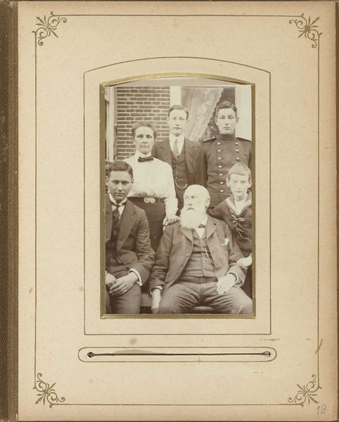 Editor: So, here we have a photograph from 1864 titled "Groepsportret van 14 officieren (o.a. J.W. Binkes) van het schip Het Metalen Kruis," which roughly translates to "Group portrait of 14 officers... of the ship The Metal Cross," credited to Te Gempt & Van Moorsel. There’s a somber formality to this group portrait, a sort of Victorian-era gravitas. What jumps out at you? Curator: Oh, this image whispers stories, doesn’t it? It’s not just a picture; it’s a carefully constructed tableau. It’s like peeking through a portal to a very particular moment. I imagine the stifling heat, the smell of salt and something faintly medicinal…and the immense pressure of having your likeness captured for posterity. Have you noticed how everyone is looking *slightly* to the side, rather than directly at the camera? Editor: Yes! Almost uniformly so. What do you think that suggests? Curator: It speaks of a self-consciousness, a slightly awkward dance with the relatively new technology of photography. It makes them seem less like hardened naval officers and more like real people, caught in a strange in-between space. You almost feel a pang of empathy, wouldn’t you say? I wonder what adventures they had seen or would face together on that ship... Metalen Kruis... Editor: Absolutely! It’s less a depiction of authority and more an intimate look at these specific men and their moment in time. Curator: Precisely. It invites reflection, not just on their role but on the evolving human experience and how we’ve chosen to remember each other, one carefully composed shot at a time. Editor: This has shifted my perspective entirely! Thank you! Curator: My pleasure! Sometimes the best way to look at a picture is not just *with* your eyes, but *through* your heart.