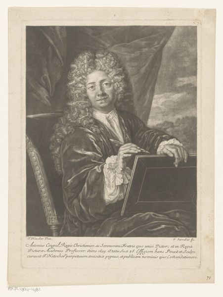 This is Martin Bernigeroth’s portrait of Paul Anton, etched with a sharp eye for detail. Note the prominent book under his hand, a symbol of knowledge, status, and scholarly authority. This symbol carries a heavy cultural weight, echoing through centuries of intellectual tradition. The book, a testament to learning, appears in various forms throughout history—from ancient scrolls to illuminated manuscripts. Consider how Egyptian pharaohs were depicted holding scrolls, emblems of divine knowledge. Yet, the book’s meaning evolves, reflecting societal shifts. Here, the subject’s hand gently resting upon the book presents more than just scholarship, but intellectual power, and control over knowledge. There's an element of almost suppressed emotion in the subjects gaze, an intentional composition evoking a deep subconscious response. This, I believe, highlights the tension between knowledge as a tool of enlightenment and its potential for control. The book, therefore, is not merely an object but a potent symbol. Its meaning, like the currents of history, ebbs and flows, constantly reshaping our understanding of knowledge and power.