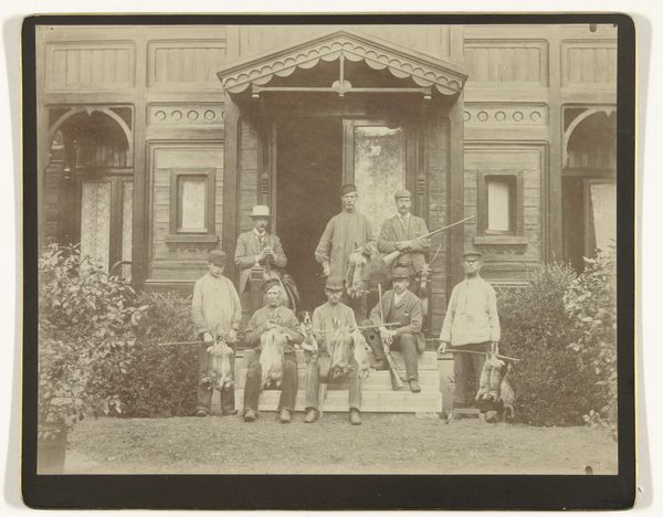 Editor: So, this photograph, “Gamelanorkest,” taken between 1880 and 1888 by Herman Salzwedel, depicts a Javanese Gamelan orchestra. It has this fascinating, almost dreamlike quality with its sepia tones, doesn’t it? The sheer number of musicians is striking. What do you find particularly captivating about this piece? Curator: Captivating is indeed the word! It transports me to another time, a whisper from the late 19th century. The arrangement, for one – the formal portrait style imposed upon a musical gathering. This blending of the staged and the spontaneous, it's almost comical! It raises questions about how Western photography, often clinical and objective, was used to capture a culture so deeply rooted in spirituality and communal harmony. And those columns! They loom behind, witnessing. It’s like history and music are entwined. What do *you* make of the setting, though? Does it speak to you? Editor: Definitely. It's grand, almost palatial. But it feels staged, like a backdrop. It makes me wonder, was this performance for someone specific? Curator: Exactly! That's the million-dollar question. And see how the light filters? I bet, if we could hear it, this wasn't just music. This was about power, identity, spectacle…Maybe it was commissioned work for the colonizers? What instruments grab your attention the most? Editor: Those big, bowl-shaped gongs are visually arresting, and imagining their resonance is something else. Considering the period, I hadn't anticipated such a well-documented scene; but also it makes you question the role of photographer during this time. Curator: You've hit upon a vital point, haven’t you? These early photographs – they're not neutral documents. They're interpretations, negotiations… almost cultural artifacts in themselves! I think about this tension a lot when looking at photos like this. It challenges me, I love that feeling. Editor: I am left musing at its layers – music, history, power. Definitely gave me some good food for thought. Curator: I could not agree more, art should engage you and leave you questioning!