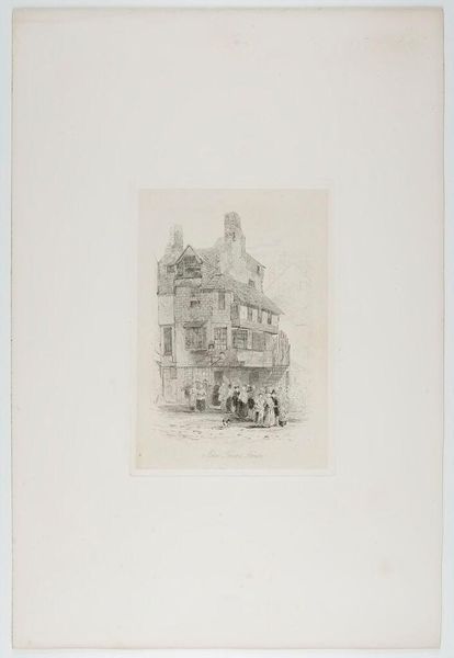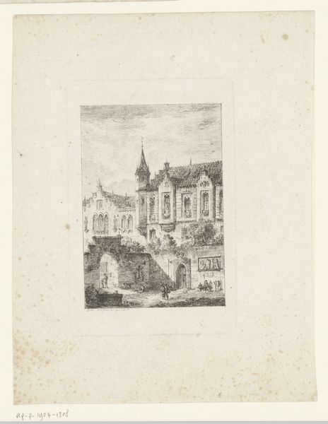 Curator: Here we have Alfred Louis Brunet-Debaines' "Street of the Grand Steps of S. Louis at Blois." The image feels steeped in history, doesn't it? Editor: Absolutely, it feels like a hushed memory. I'm drawn to the way the perspective lines converge, leading your eye up those steps, almost pulling you into the past. Curator: Indeed, the architectural rendering is quite striking. Brunet-Debaines was known for his skill in etching, capturing the nuances of light and shadow to create a palpable sense of atmosphere. Editor: And the subtle details – the figure walking up the stairs, the textures of the buildings – they give such a sense of scale, a sense of place, really. It is like discovering Blois for the first time. Curator: I agree. It's a journey in monochrome. It's interesting how a seemingly simple street scene can hold so much depth. Editor: Well, it has certainly opened my eyes to the beauty in what others might find ordinary.